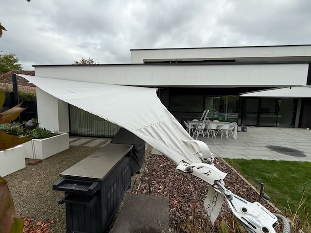Manually retractable sail, perfect for sunny spaces. Arroww+ reinforcements for added durability.