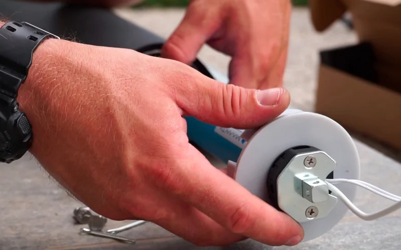 Insert the motor (optional) into the winder roller, fix it using the supplied kit.