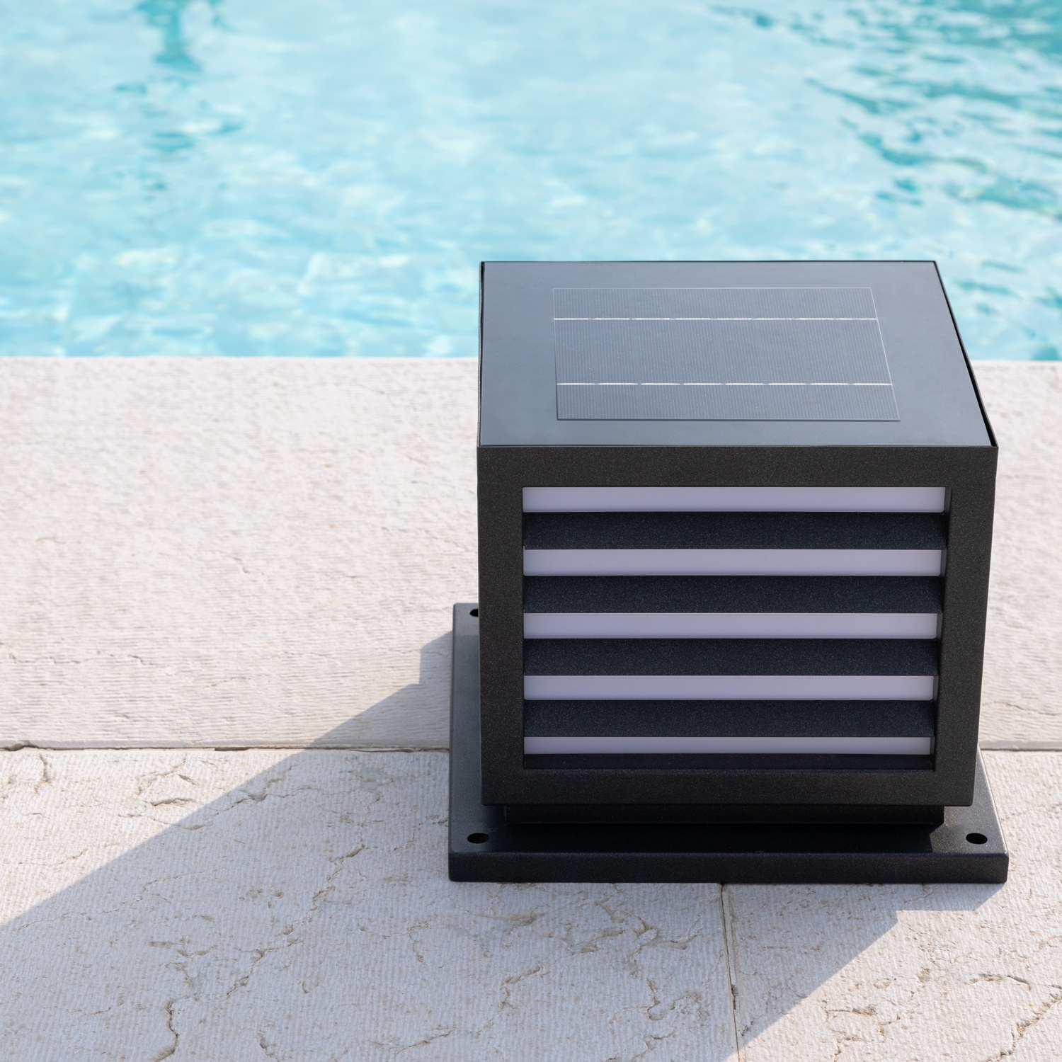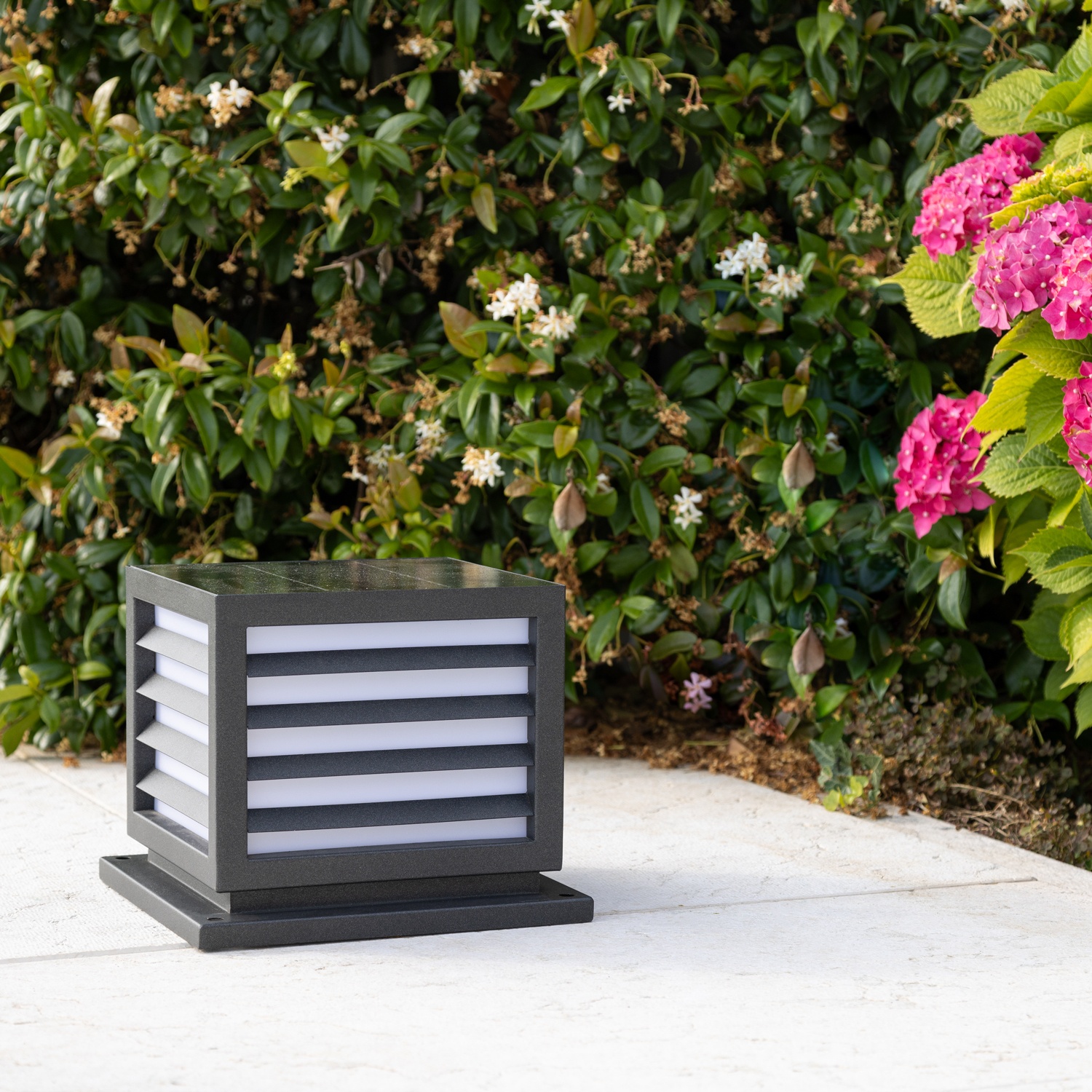 Solar QUB is the automatic light switching outdoor lamp with integrated solar panel and lithium battery.