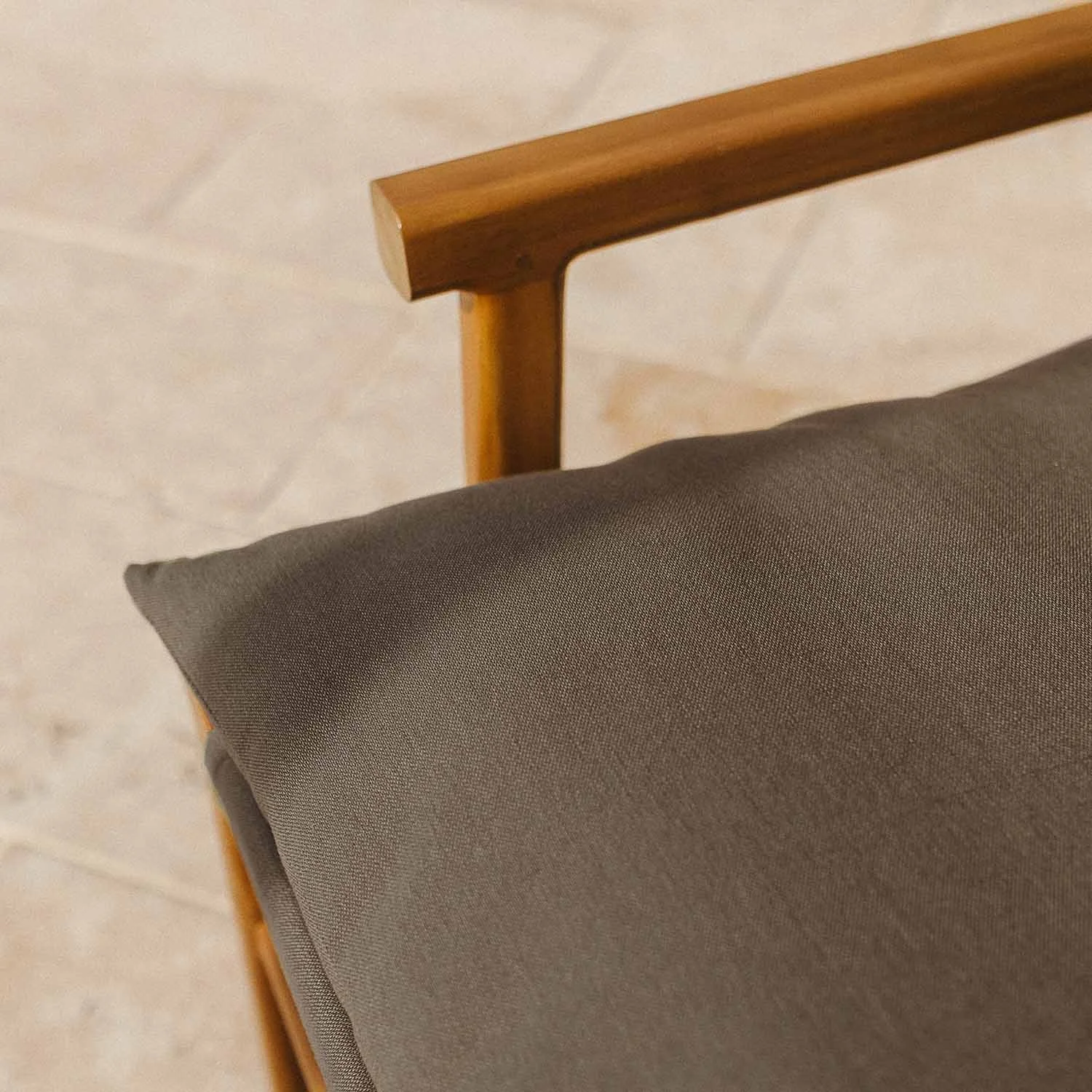 Its unique design and modularity make it perfect for completing your space under the shade sail. Made with eco-sustainable materials, FLEGT certified Indonesian teak and waterproof fabric, Bolina is resistant and, thanks to the removable pillows, easy to clean.