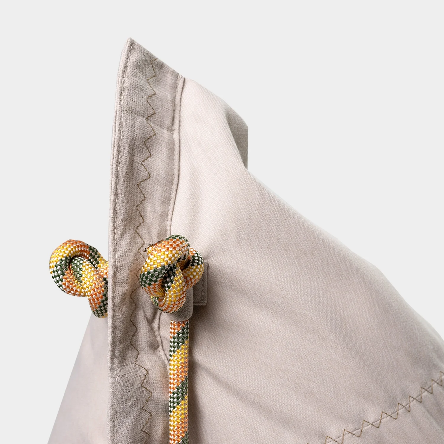 | Stitching | Radial zigzag stitching inspired by nautical design |