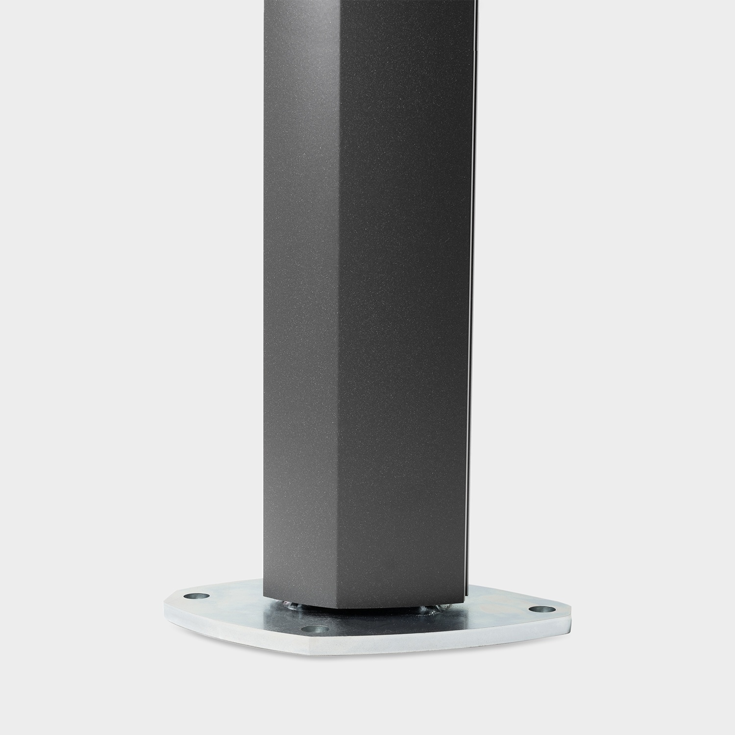 • Included accessories: sturdy ground base or steel wall brackets, and Alu Simple Lid, the cover to hide the fixing screws of your pole to the ground