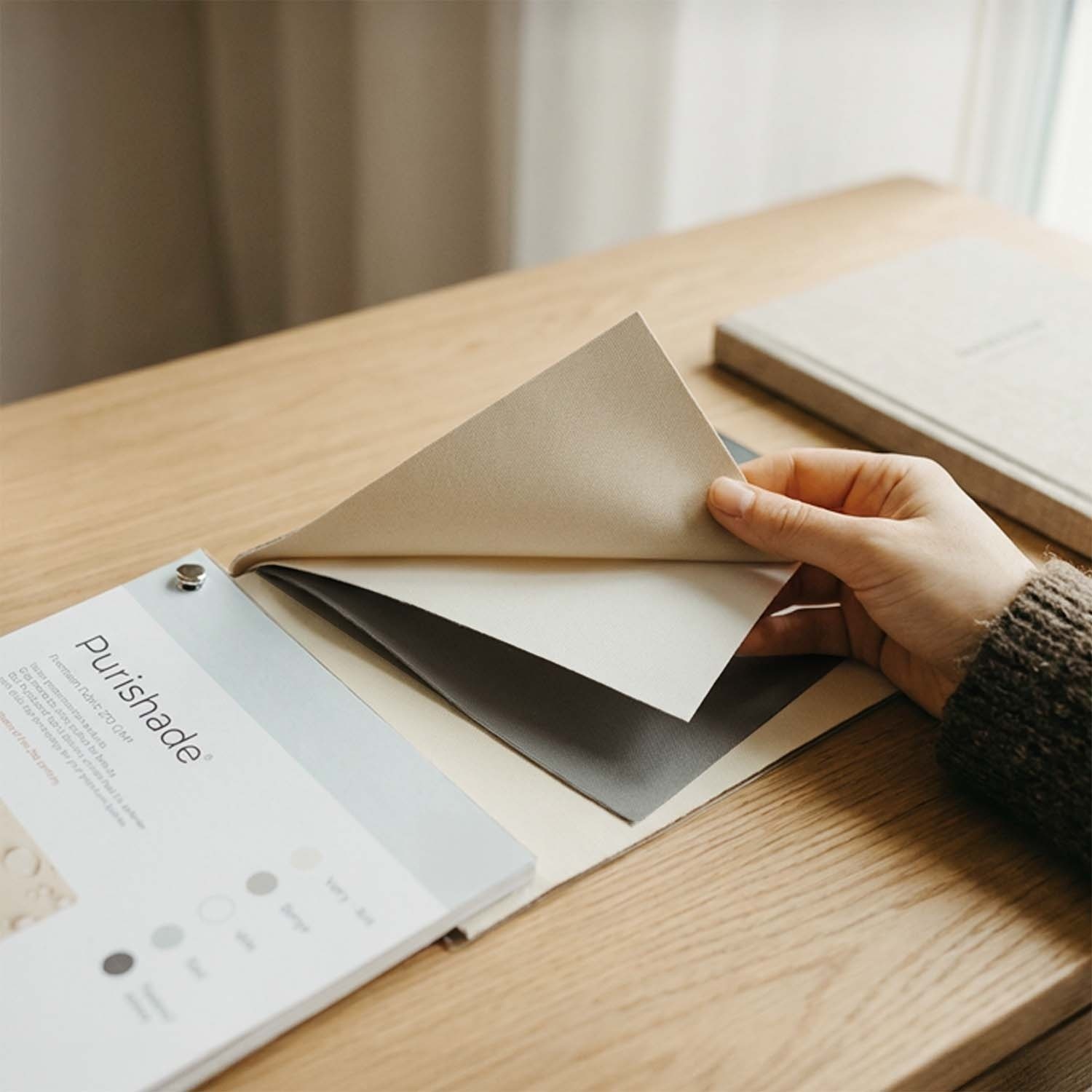 Feel the quality of our fabric samples for yourself: see all the colours available for our premium Purishade® and Meshnet® finishes up close. Shipping is always free.