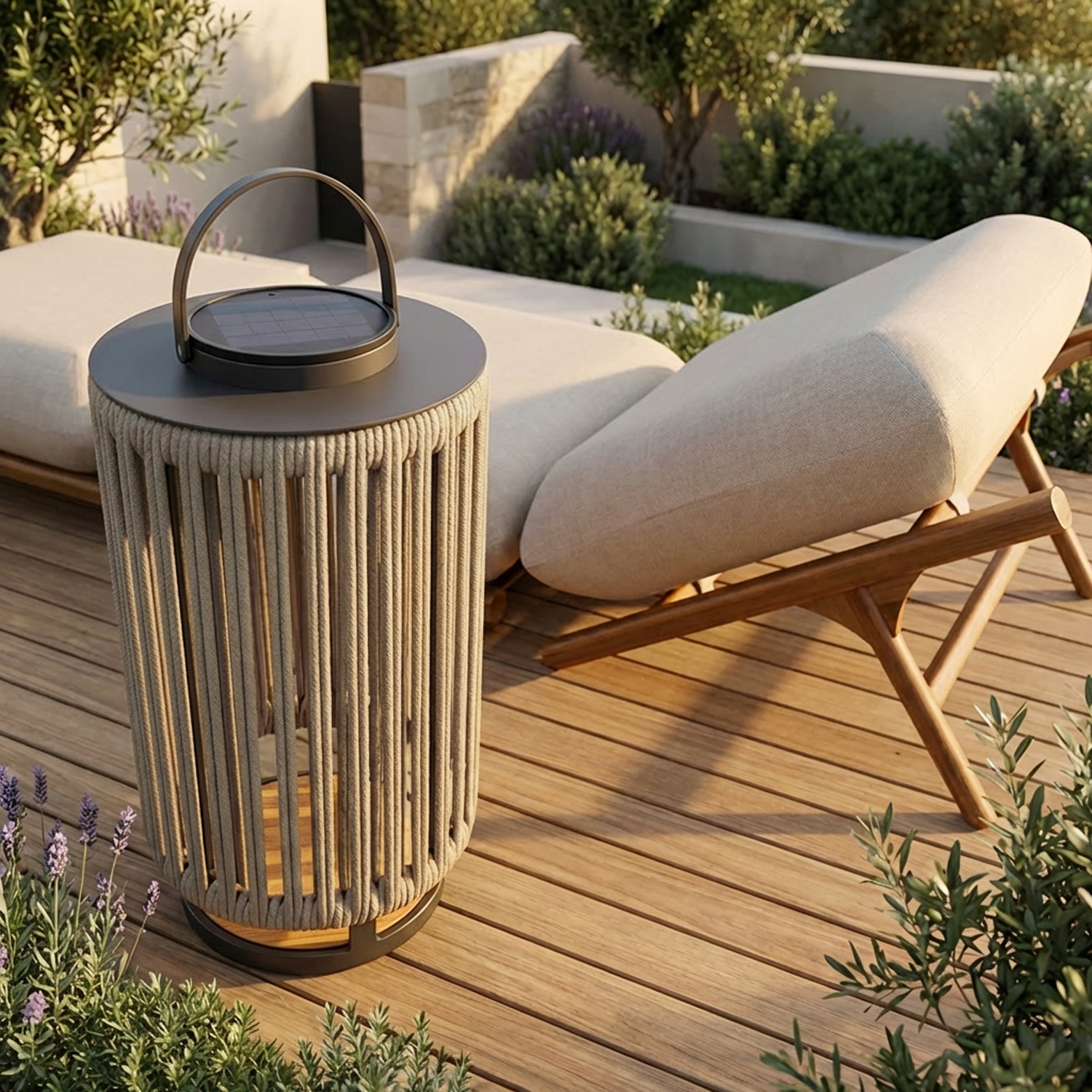 Minimal maintenance: periodically clean the solar panel with a damp cloth to remove dust and debris. The painted aluminium and nylon rope do not require any treatment, ensuring reliable performance in British gardens and outdoor living spaces.