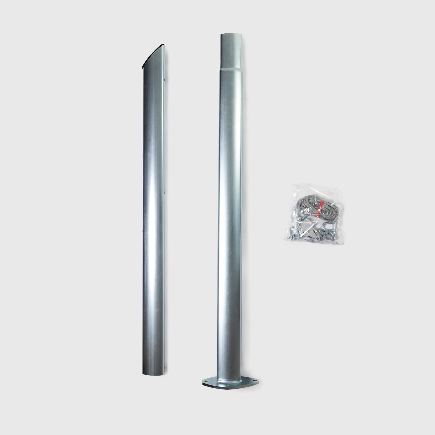 Just follow the guides, and the pole will be very simple to install. It is already equipped with ground bases or collar, and special tensioners to anchor the sail.