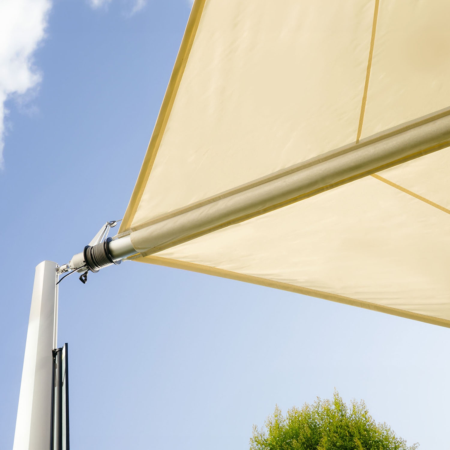 | Included components – Tensioning system | Spring unit, rope winding pulley, corner pulleys on the sail, tensioning rope, cantilever bracket |