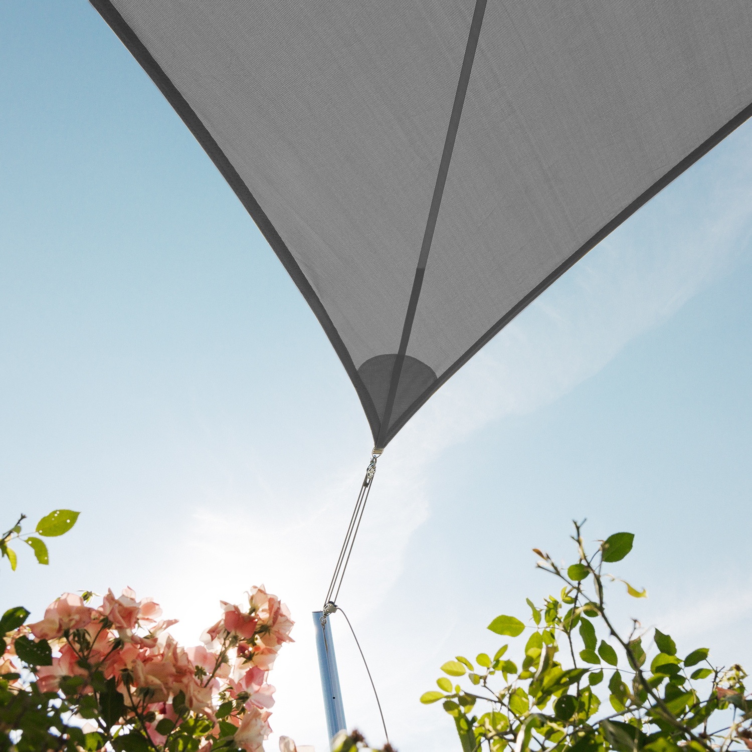 A reinforcement layer has been sewn into each corner of the sail. This provides greater resistance in case of mechanical stress caused by wind and rain.
